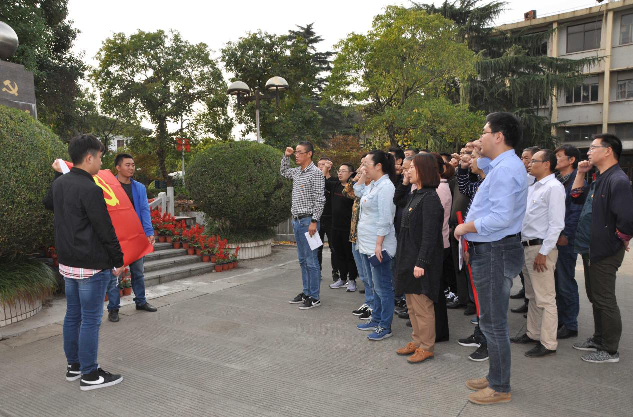 來到南通獨(dú)立支部紀(jì)念地碑前,在大生集團(tuán)有限公司副董事長(zhǎng)、總會(huì)計(jì)師漆穎斌的熱情接待下,紡織染公司全體黨員聆聽了黨辦潘宇關(guān)于獨(dú)立支部光榮歷史的講解,對(duì)其成立的過程,最初成員,以及偉大意義和作用都有了更為深刻地認(rèn)識(shí)和理解。作為南通最早的黨組織,中共南通獨(dú)立支部的成立點(diǎn)燃了江海大地第一簇革命星火,掀開了南通革命史上嶄新的一頁(yè)。 瞻仰紀(jì)念碑,紡織染黨委書記、董事長(zhǎng)李志宏帶領(lǐng)全體黨員干部莊嚴(yán)地舉起右手,在中國(guó)共產(chǎn)黨南通支部紀(jì)念碑前,面對(duì)火紅的黨旗,重溫入黨誓詞,緬懷革命先輩光榮歷史,深刻感受他們?cè)诟锩鼩q月里,不忘初心,牢記使命,創(chuàng)獨(dú)立支部、干經(jīng)天偉業(yè)的壯志豪情;感受他們?yōu)橹袊?guó)人民謀幸福,為中華民族謀復(fù)興的艱苦卓越歷程。