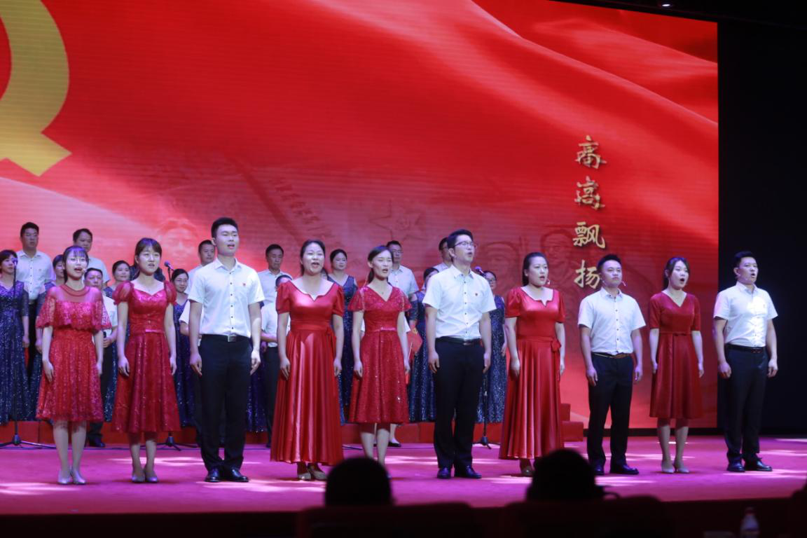 “沒有共產(chǎn)黨就沒有新中國,沒有共產(chǎn)黨就沒有新中國,共產(chǎn)黨辛勞為民族,共產(chǎn)黨他一心救中國……”演出在全場人員《沒有共產(chǎn)黨就沒有新中國》的激情合唱中圓滿結(jié)束。