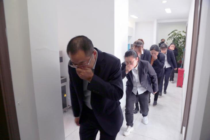 隨后公司組織全體員工進行了疏散演練,首先由公司安全員在6樓辦公區(qū)域發(fā)出火情報告,隨后黃色煙霧迅速彌漫整個辦公區(qū)域,根據應急預案逃生指令,安全員通知各科室人員迅速撤離,各科室人員按照消防通道迅速撤離,從六樓辦公區(qū)域撤離到1樓安全區(qū)域,整個疏散演練耗時4分鐘,疏散演練成功告捷。