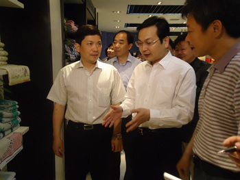 五月十六日上午,南通市委副書記、市長張國華到如東調(diào)研的第一站就來到大東公司。張市長在大東產(chǎn)品陳列室看到琳瑯滿目的高品質(zhì)產(chǎn)品后,頻頻點頭稱贊。 大東總經(jīng)理高軍介紹說,大東公司堅持走“新產(chǎn)品、新技術(shù)、新材料”之路,先人一步進行了企業(yè)轉(zhuǎn)型,在行業(yè)普遍不景氣的情況下發(fā)展質(zhì)態(tài)良好,一至四月份大東的利稅和員工工資同比均有較大幅度增長。公司品牌戰(zhàn)略取得明顯成果,最近DD牌商標(biāo)被國家工商總局認定為中國馳名商標(biāo)。公司機臺全部開足,訂單已排至8月份。當(dāng)張市長了解到這些情況后高興地說,大東公司作為一家傳統(tǒng)企業(yè),通過技術(shù)創(chuàng)新、產(chǎn)品創(chuàng)新、新材料應(yīng)用、品牌運營,成功實現(xiàn)了企業(yè)的轉(zhuǎn)型升級,為南通市傳統(tǒng)企業(yè)的轉(zhuǎn)型升級樹立了樣板。 市商務(wù)局局長顧淑英、縣長潘建華、日本國株式會社英瑞會長吳文貴、副會長吳幸子女士等陪同張市長考察。