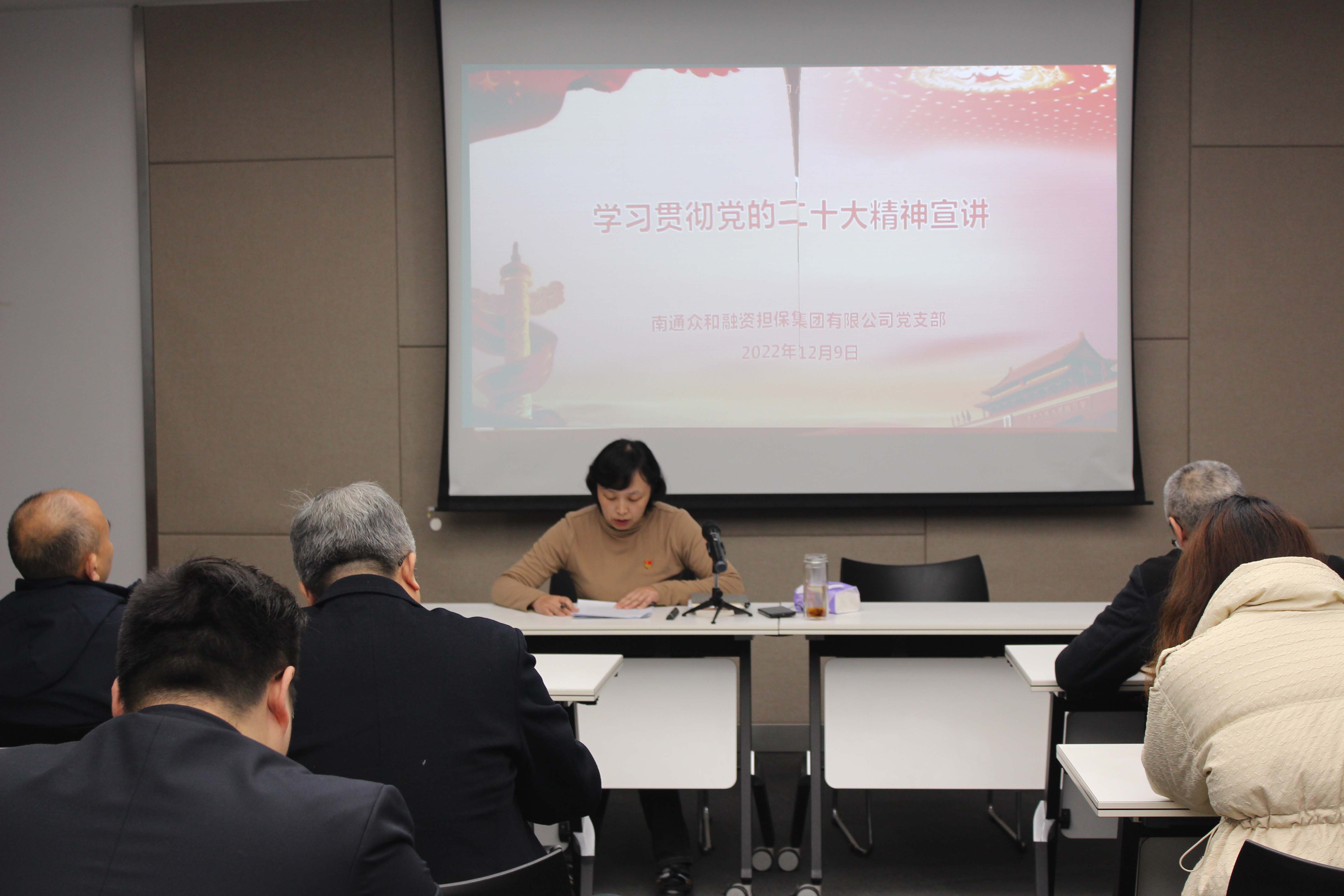 近日,眾和擔(dān)保黨支部組織開展學(xué)習(xí)貫徹黨的二十大精神宣講活動(dòng),黨支部書記李瑾作宣講報(bào)告,公司中層以上領(lǐng)導(dǎo)及全體黨員參加活動(dòng)。