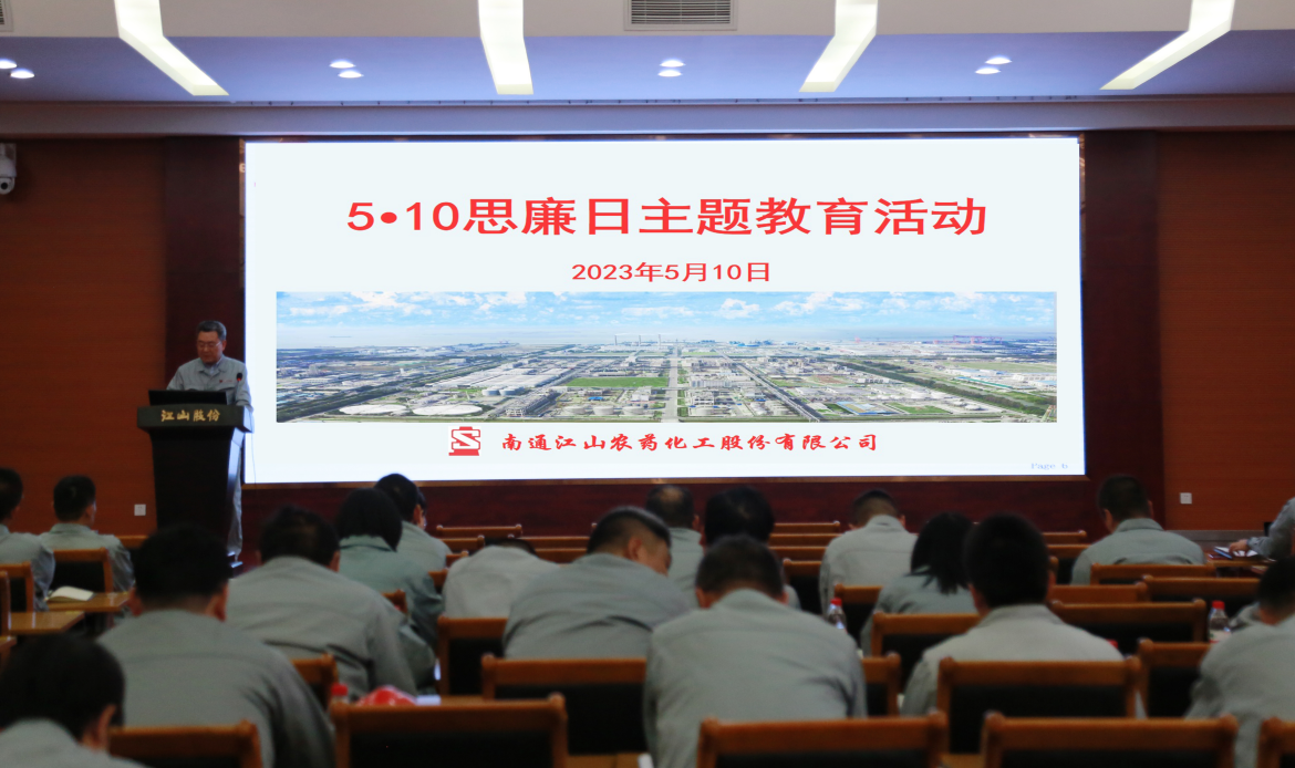 5月10日下午,江山股份300會議室內正開展“5?10”思廉日活動,引導全體黨員與崗位員工牢固樹立“務實、清廉”的理念,扣好廉潔從業(yè)的“第一粒扣子”。公司班子成員、核心團隊及其他關鍵崗位人員60余人參會。 會上,公司紀委書記石進為全體人員上了一堂生動的廉政警示教育黨課,通過典型案例讓公司關鍵崗位人員進一步筑牢拒腐防變的思想防線,做到對黨忠誠、個人干凈、敢于擔當。公司紀委副書記吳建宣讀“江山股份關于開展2023年5?10思廉日活動的通知”。 隨后,現(xiàn)場采用視頻會議的方式連接產(chǎn)控集團思廉日活動現(xiàn)場,集中觀看了警示教育片《激濁揚清——破壞政治生態(tài)典型案件警示錄》,聆聽了市紀委常委陳德軍的廉潔講座。最后,產(chǎn)控集團董事長張劍橋作總結。 江山股份將繼續(xù)把廉政課堂搬到公司的廉政陣地,讓廉政文化融入每一名員工內心深處,讓清正廉潔的風氣更加豐沛充盈。