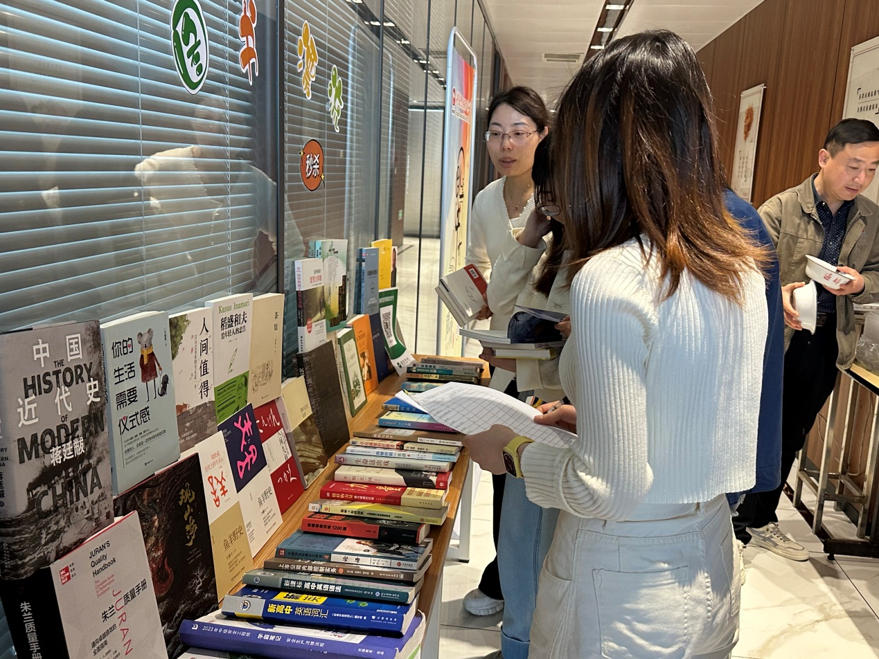 書香潤智,雅行成習(xí)。為了讓員工們閑置的圖書流動(dòng)起來,提高圖書的使用價(jià)值,營造良好的讀書氛圍,打造書香精華,第29屆世界讀書日之際,精華制藥直屬團(tuán)支部根據(jù)集團(tuán)黨委部署,開展了“好書漂流、愛心無限-跳蚤書市”活動(dòng)。 為了保證此次活動(dòng)的順利開展,集團(tuán)直屬黨支部發(fā)出倡議,動(dòng)員員工將家中閑置的書籍捐贈(zèng),由集團(tuán)直屬團(tuán)支部負(fù)責(zé)收集售賣。 4月24日,直屬團(tuán)支部將“跳蚤書市”設(shè)在了人流量較大的公司食堂,支委們使出渾身解數(shù),書籍介紹、宣傳售賣、講價(jià)議價(jià)……全然一副新店開張的畫面,熱情洋溢。來往的員工們?nèi)祟^攢動(dòng),挑選購買,收獲頗豐。公司領(lǐng)導(dǎo)們也積極加入“購書”隊(duì)伍,讓“跳蚤書市”的氣氛更加活躍。 此次“跳蚤書市”是集團(tuán)第三屆“菁閱”讀書月系列活動(dòng)之一,近年來公司致力打造良好學(xué)習(xí)氛圍,持續(xù)激發(fā)員工們的閱讀熱情,不斷為打造精華“百年老店”蓄力。據(jù)統(tǒng)計(jì),僅當(dāng)日售賣書籍就已超捐贈(zèng)書籍的半數(shù),后續(xù)團(tuán)支部將集合所有售書款用于公益事業(yè)。