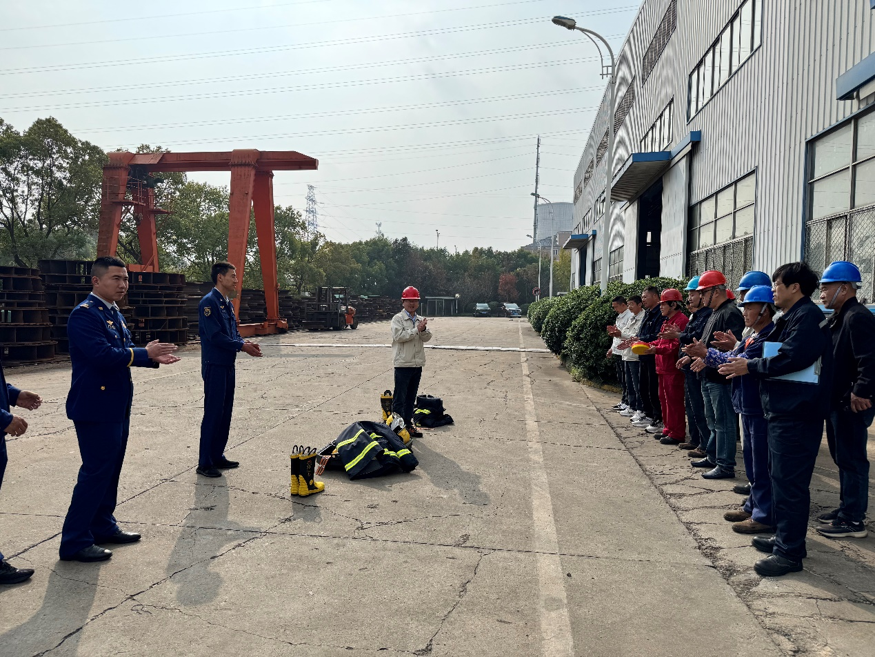 近日,金通靈公司義務(wù)消防隊(duì)全員、集中供氣站作業(yè)人員、全體安全管理人員在公司集中供氣站附近空地整隊(duì)集合,伴隨著消防車的駛?cè)?,本次公司消防?yīng)急拉練活動(dòng)暨消防技能培訓(xùn)拉開(kāi)序幕。本次活動(dòng)特邀觀音山特勤消防站的指戰(zhàn)員作現(xiàn)場(chǎng)指導(dǎo)和講解,企管部(安全管理部)高級(jí)總監(jiān)沈毅作現(xiàn)場(chǎng)動(dòng)員。