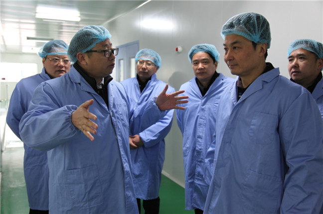 2月16日,市政府徐新民副市長、王國平副秘書長一行來南通產(chǎn)業(yè)控股集團(tuán)有限公司調(diào)研,徐副市長現(xiàn)場(chǎng)察看了產(chǎn)控集團(tuán)投資企業(yè)精華制藥的生產(chǎn)車間,并聽取了精華制藥公司生產(chǎn)情況匯報(bào)。產(chǎn)控集團(tuán)董事長杜永朝、總經(jīng)理陸強(qiáng)新等陪同調(diào)研。
